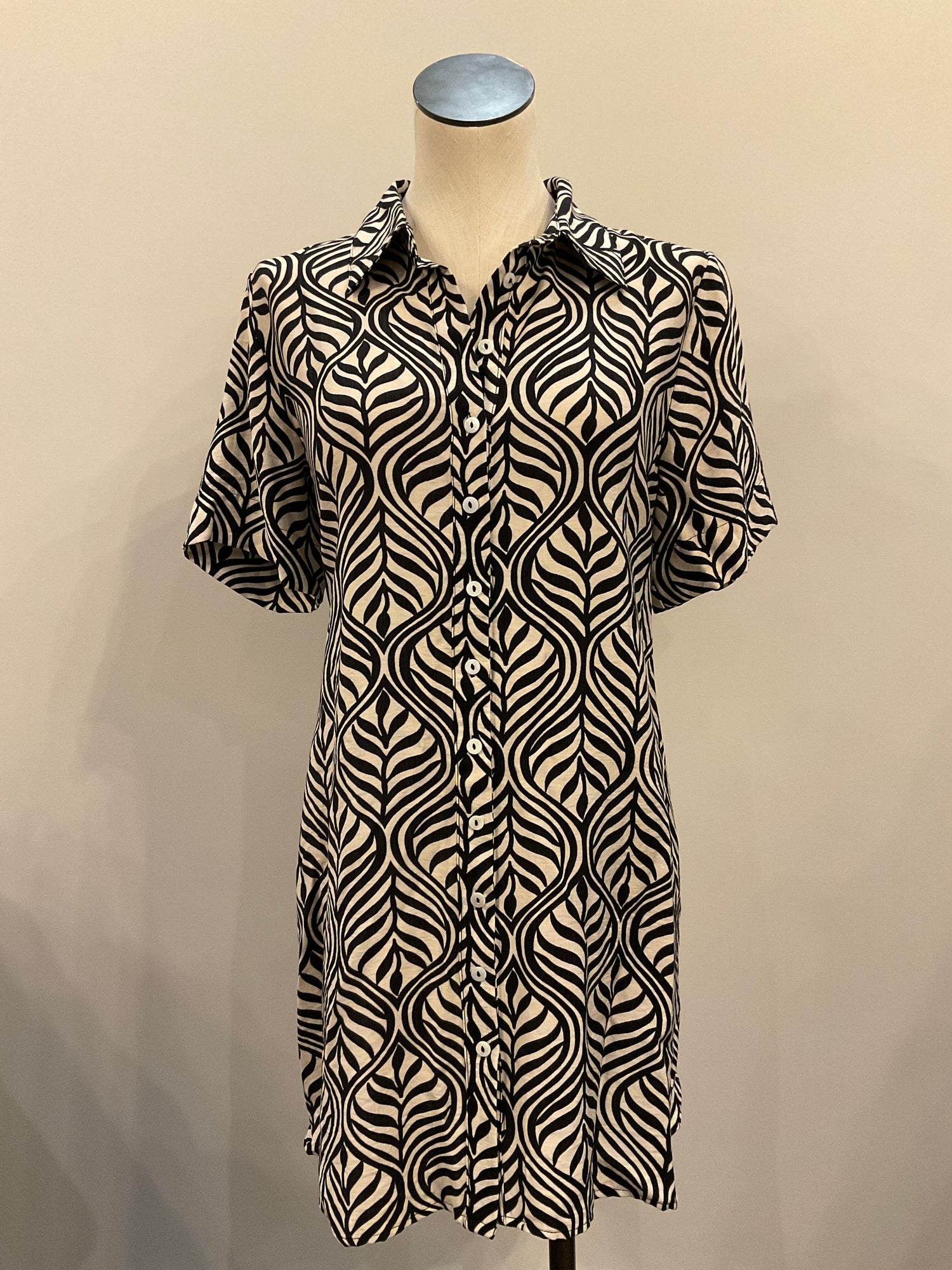 Looking for a bold and stylish addition to your wardrobe? Look no further than our B/W Geometric Dress! With a classic collared button down design and eye-catching black and white pattern, this dress is sure to turn heads and make a statement. Perfect for any occasion, this dress is a must-have for any fashion-forward individual! Or unbutton completely wear as a cover up. Dress down a little black dress or dress up a simple tank dress.