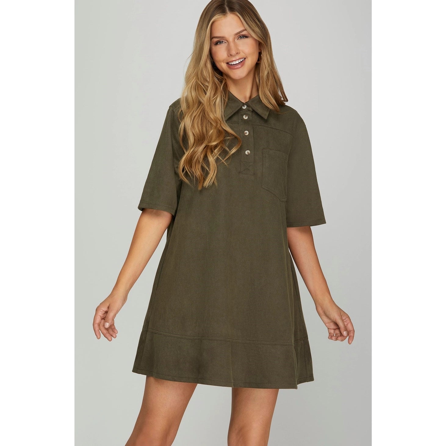 Step out in style with the Colleen Midi Dress, featuring a soft suede texture in a rich olive hue. Its flattering silhouette offers a playful twist on classic elegance, perfect for turning heads at any event. Comfortable yet chic, this dress blends cozy suede with a fun, confident vibe that’s all about you.