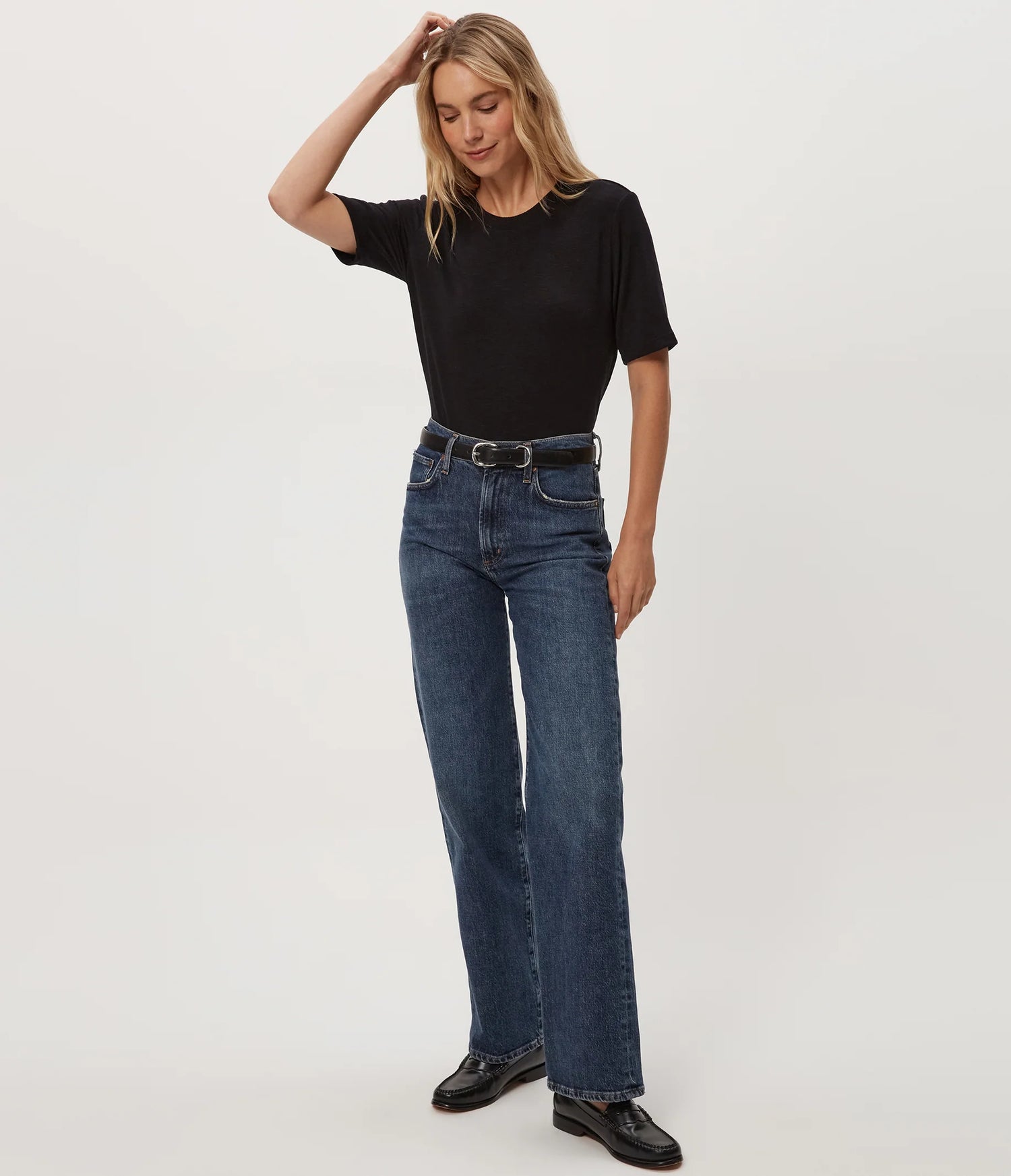 The elegant tee your wardrobe needs. This soft-knit, figure flattering crewneck has an extended short sleeve for a more elevated look. This subtle slub fabric makes this tee a perfect partner for your favorite skirts and knit pants for a pulled-together look.