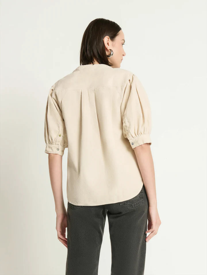 Meet your new favorite neutral: the Emmett Top in Moonbeam. With a crisp collar and chest buttons, this corduroy gem brings a playful twist thanks to its structured, elbow-length puff sleeves. Perfect for every season, it effortlessly combines comfort with style—making it a staple you'll reach for again and again.