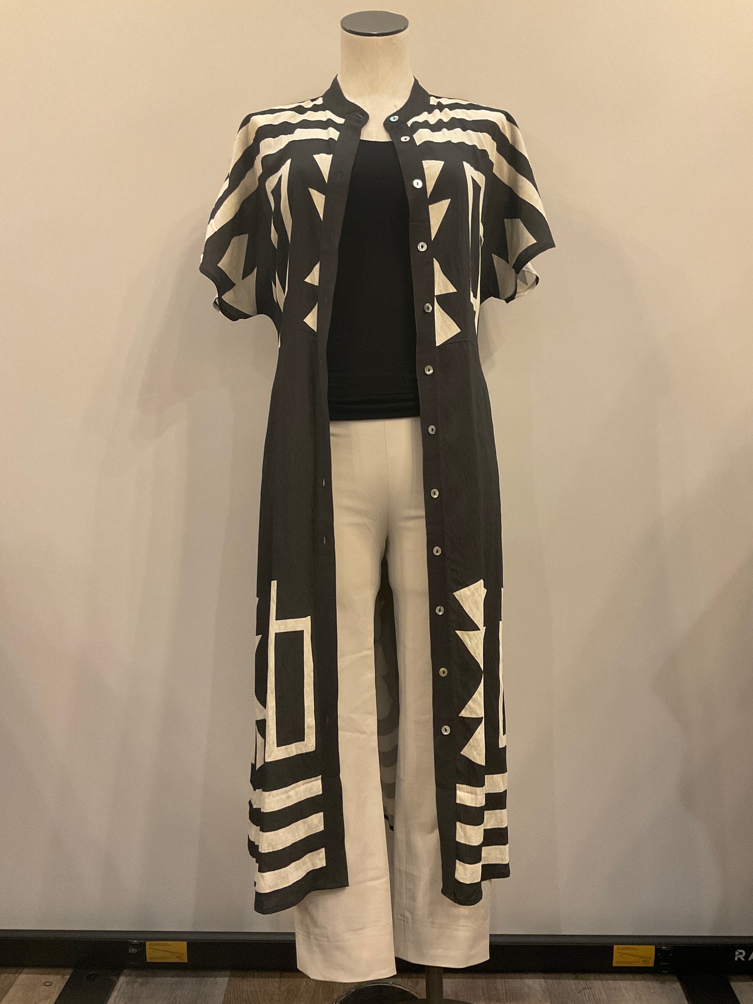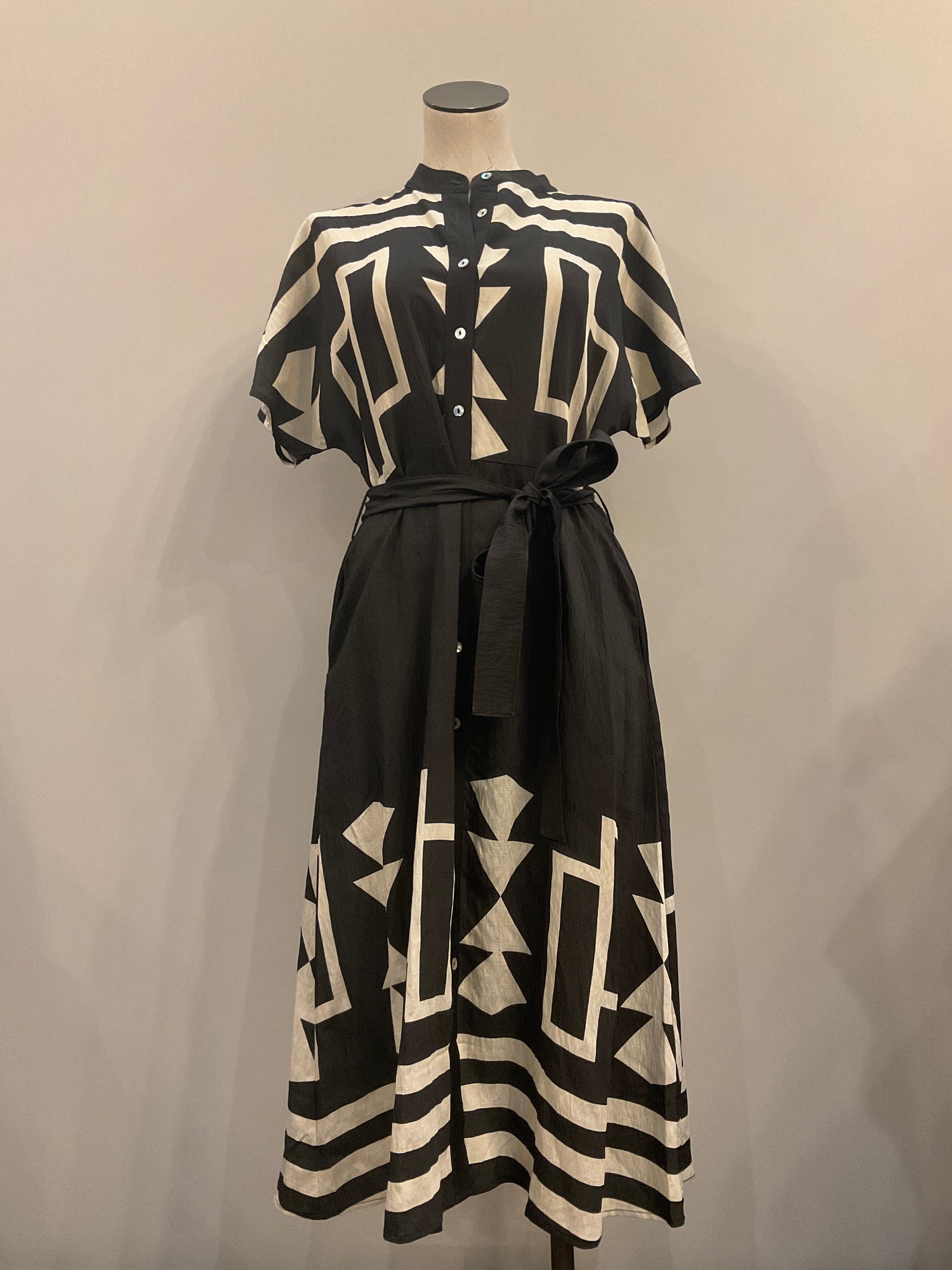 Make a statement in this striking black and white print midi dress that demands attention. The bold contrast pattern pairs beautifully with a classic button-down front and a cinched tie waist that flatters every figure. Hidden pockets keep your essentials close while you work the room. Whether you're heading to brunch or the office, this dress proves that timeless style never goes out of fashion—and looking this good shouldn't require compromise.