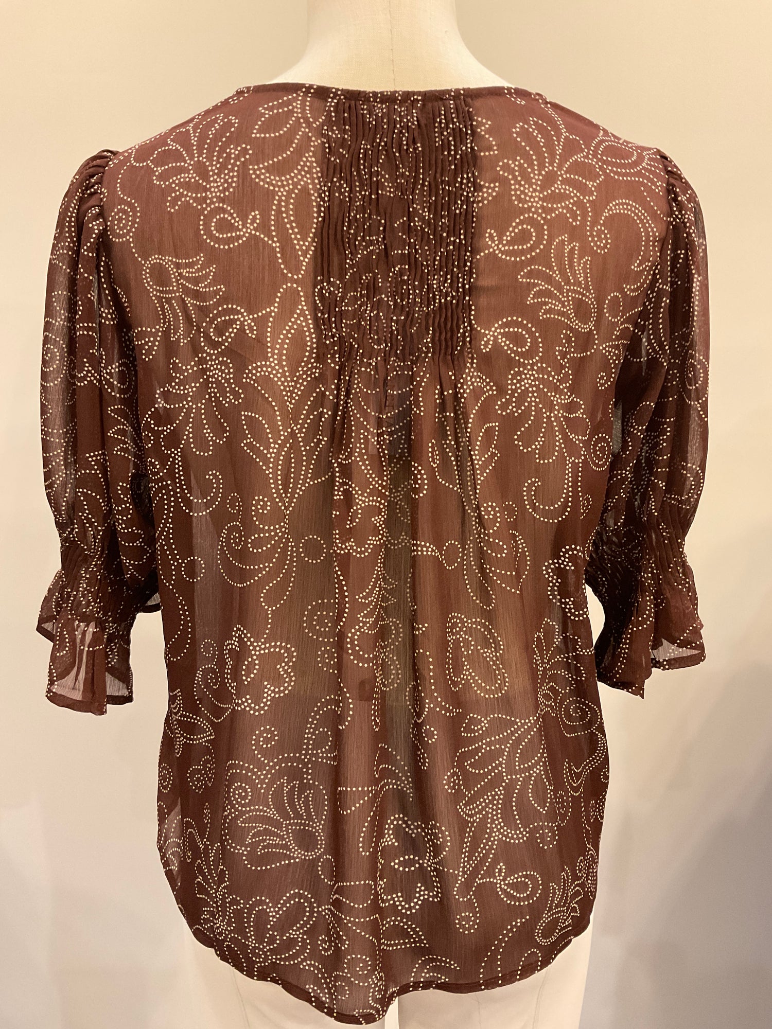 Embrace effortless style with the Sanctuary New Crush Blouse Boheme. Featuring a v-neck collar and a chic top yoke, this relaxed-fit blouse offers half sleeves with double ruffle cuffs for a touch of flair. Crafted from soft, printed lyocell, it drapes beautifully while keeping you comfortable all day. Easy to care for with a gentle hand wash and hang dry, it’s the perfect playful addition to your wardrobe.