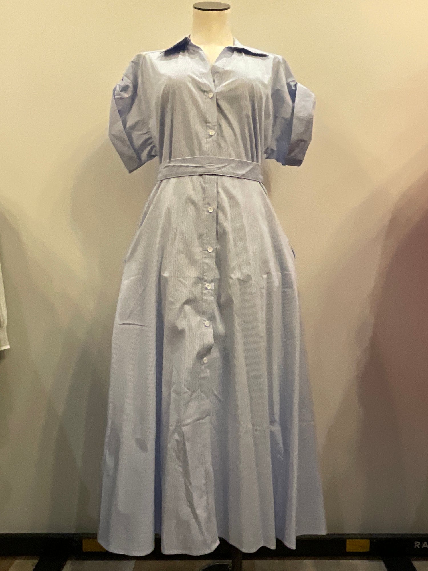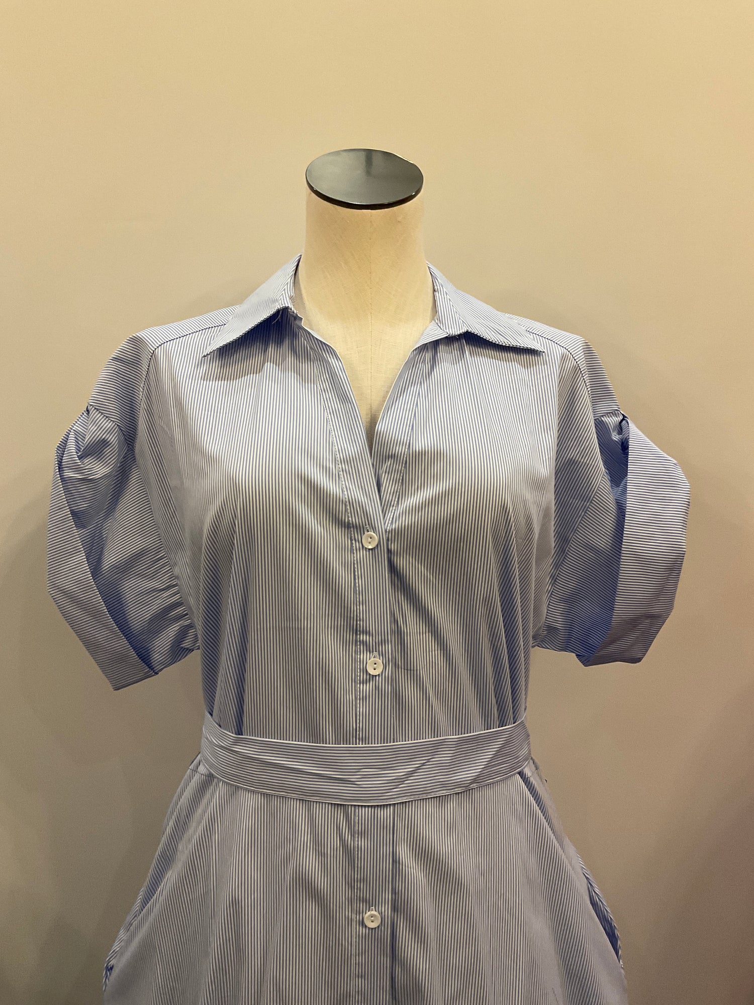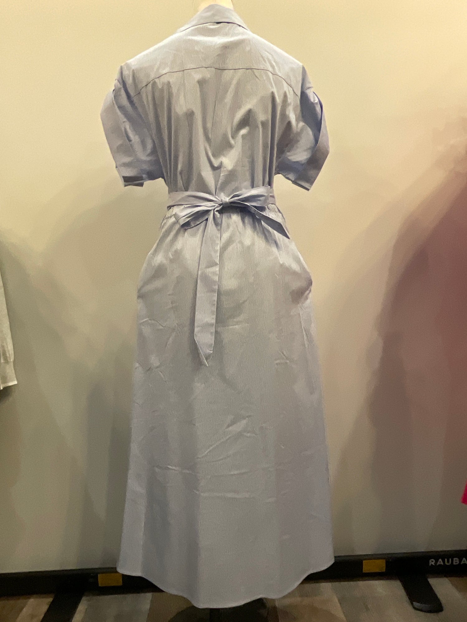 Meet your new wardrobe MVP—a blue and white striped midi dress that's as fun as it is functional. Button down the crisp collar, roll up those adorable cuffed sleeves, and tie the waist to show off your silhouette. The V-neck keeps things breezy and elegant, while practical pockets mean you can actually carry your stuff. Whether you're heading to brunch or the office, this striped stunner transitions seamlessly from casual to dressed-up with just a change of accessories.