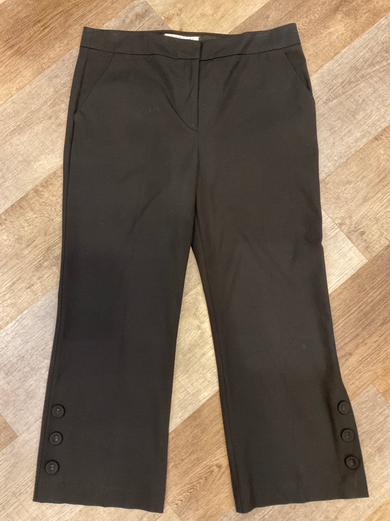 Introducing the Trina Turk Ore Pant—where polished meets playful. These sleek black dress pants feature functional front pockets for everyday essentials, faux back pockets for a streamlined silhouette, and a signature detail: three cloth-covered black buttons adorning each cuff. It's the kind of thoughtful design that keeps you looking sharp while adding just a hint of personality to your wardrobe. Dress them up or down—they're ready for whatever your day brings.