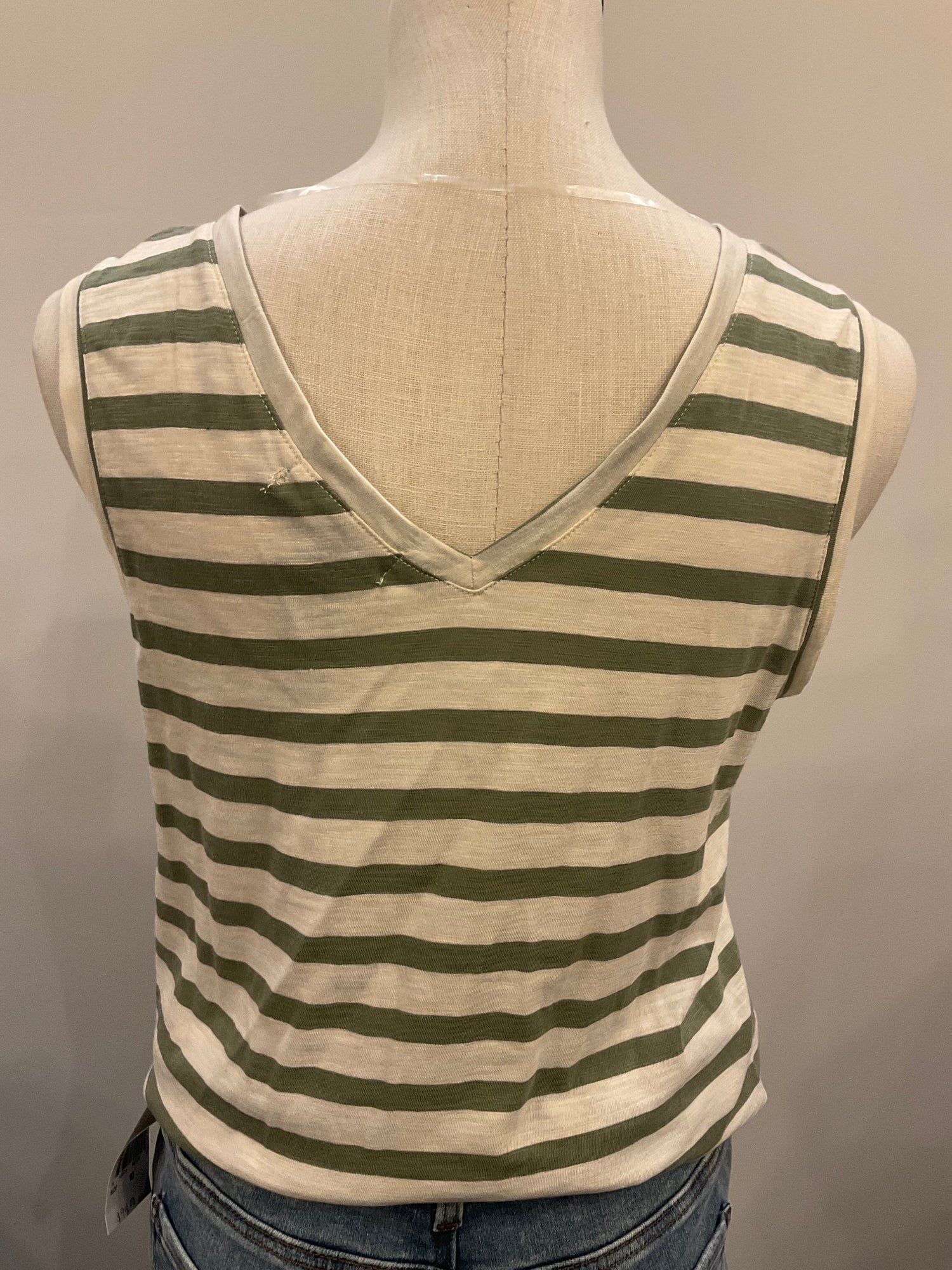 This playful V Neck Tie Tank in fresh sage green features stripes. The flattering V-neckline pairs perfectly with the fun tie-front detail, creating a light, breezy look ideal for warm days or layering with your favorite pieces. Effortlessly cute and comfortable!